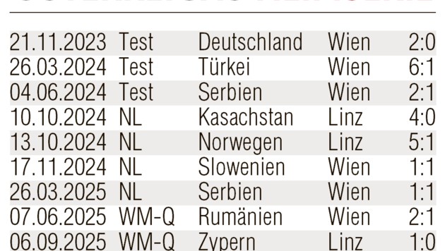 In den jüngsten zehn Heimspielen (siehe Statistik) in Wien bzw. Linz ging das ÖFB-Team nie als Verlierer vom Platz, nahm seit dem 2:0 gegen Deutschland am 21. November 2023 acht Siege und zwei Remis mit. Auch das Torverhältnis fällt mit 34:6 beeindruckend aus. Für Arnautovic Schnee von gestern, er denkt nur an Bosnien: „Ich würde nicht sagen, dass wir der Favorit sind. Wir treffen auf ein gefährliches, junges Team mit sehr viel Qualität.“